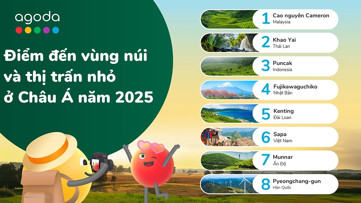 Danh sách các "Điểm đến vùng núi và thị trấn nhỏ ở châu Á năm 2025" của Agoda.
