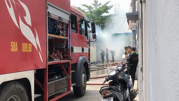 TP.HCM: Nhà xưởng ở quận 12 cháy lớn, cảnh sát đục vách tôn dập lửa