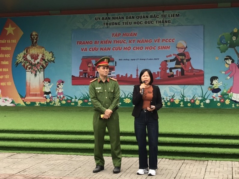 Trường Tiểu học Đức Thắng, phường Đức Thắng, quận Bắc Từ Liêm tổ chức Hội nghị tổ chức tuyên truyền, huấn luyện nghiệp vụ phòng cháy, chữa cháy và cứu nạn, cứu hộ cho giáo viên, học sinh