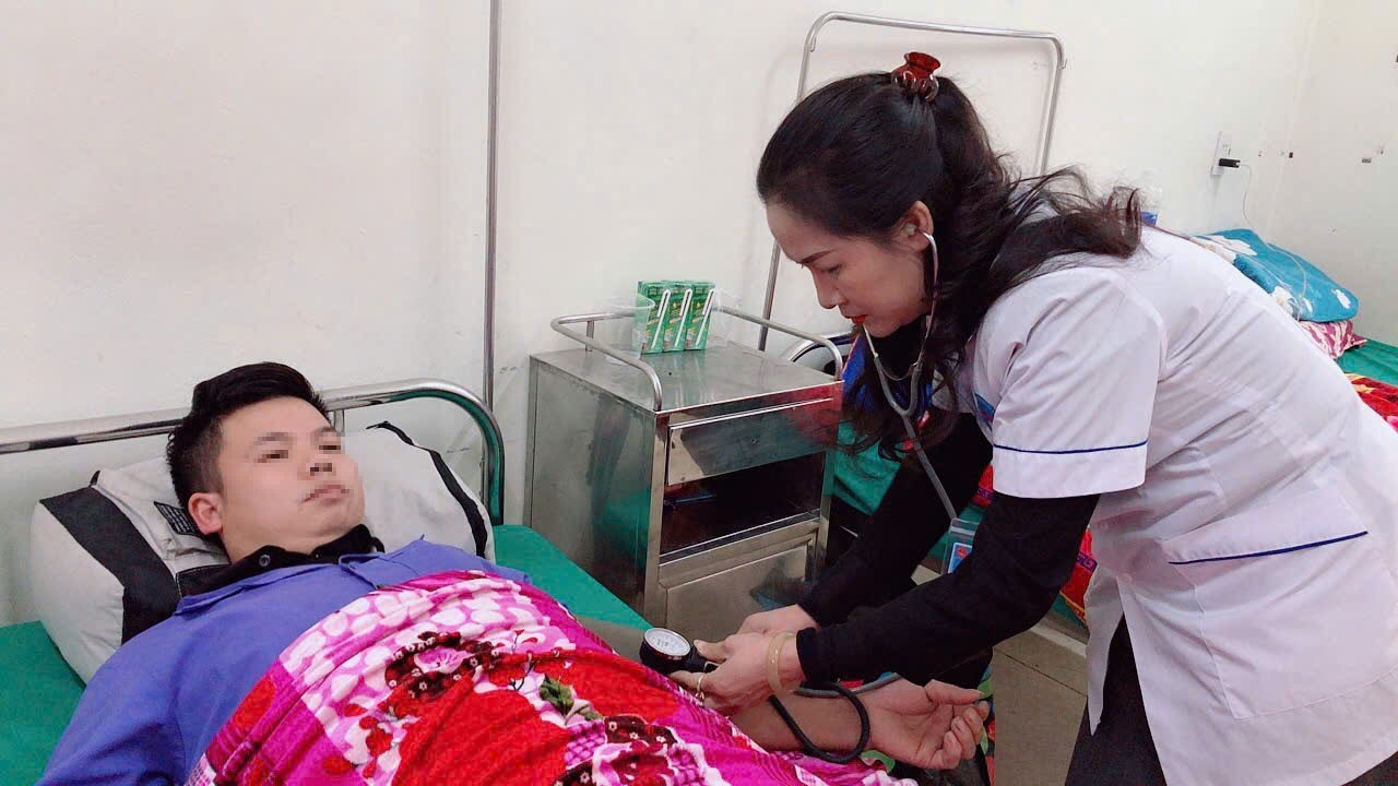 | Điều dưỡng chuyên khoa I Dương Thị Bảo Ngọc kiểm tra tình hình sức khỏe của bệnh nhân. |
