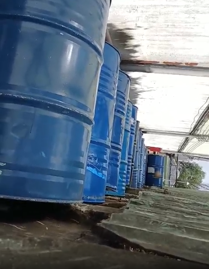 Những thùng hóa chất nguyên liệu sản xuất của Công ty Tân Nhật (Hình: người dân cung cấp)