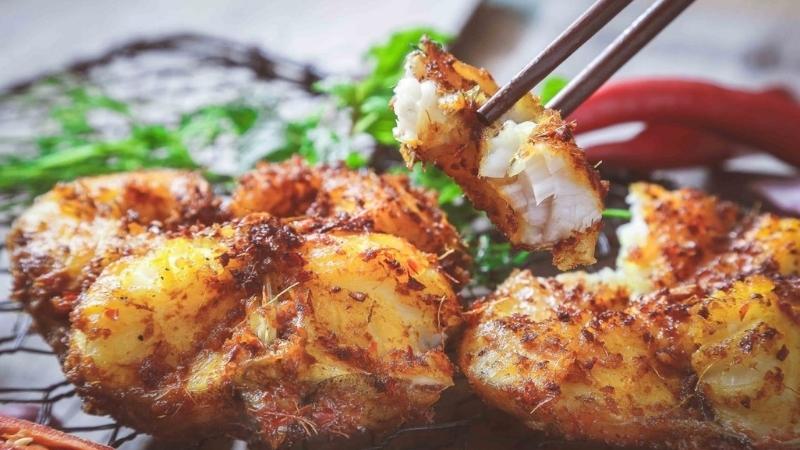 Thịt cá được tẩm ướp với riềng, mẻ, mật ong và gia vị đặc trưng, tạo nên vị chua nhẹ, ngọt thanh và thơm nồng.