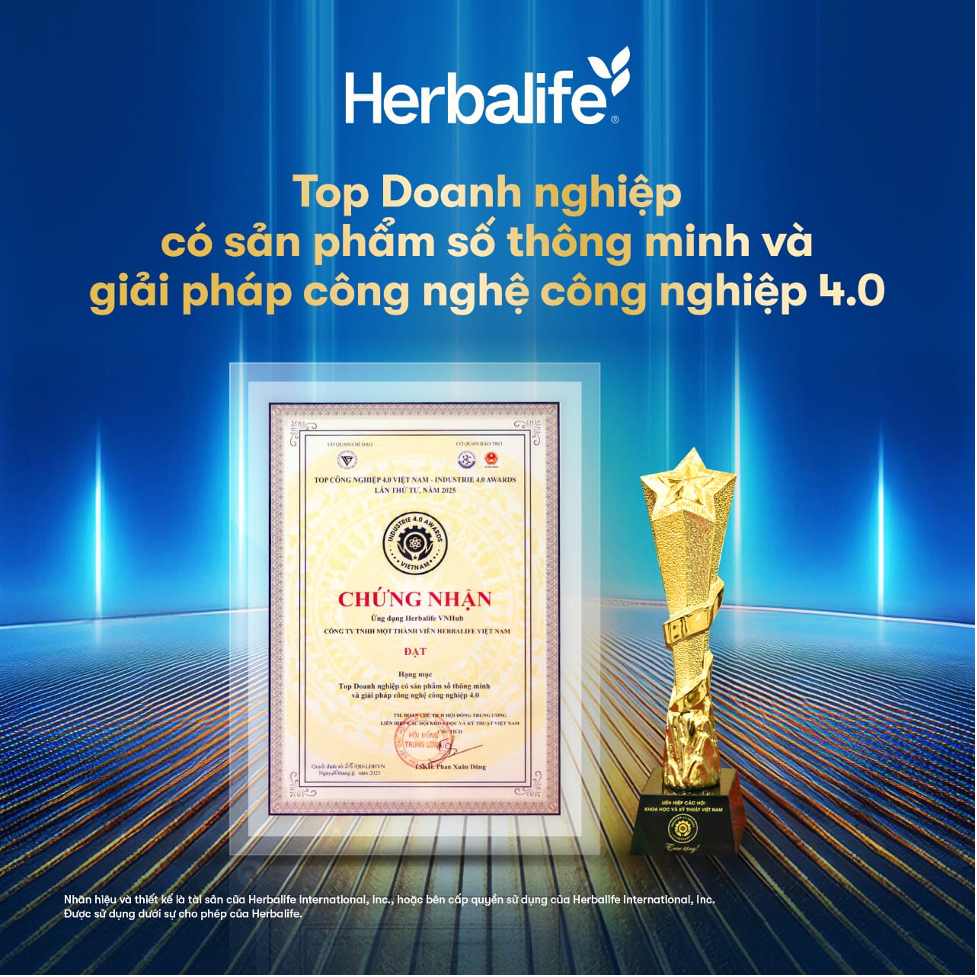 Ngày 22/6, tại Hà Nội, Herbalife Việt Nam được trao giải “Top Công Nghiệp 4.0 Việt Nam 2025” tại hạng mục “Top Doanh nghiệp có sản phẩm số thông minh và giải pháp công nghệ Công nghiệp 4.0” với Ứng dụng Herbalife VNHUB (trước đây có tên My VNClub).