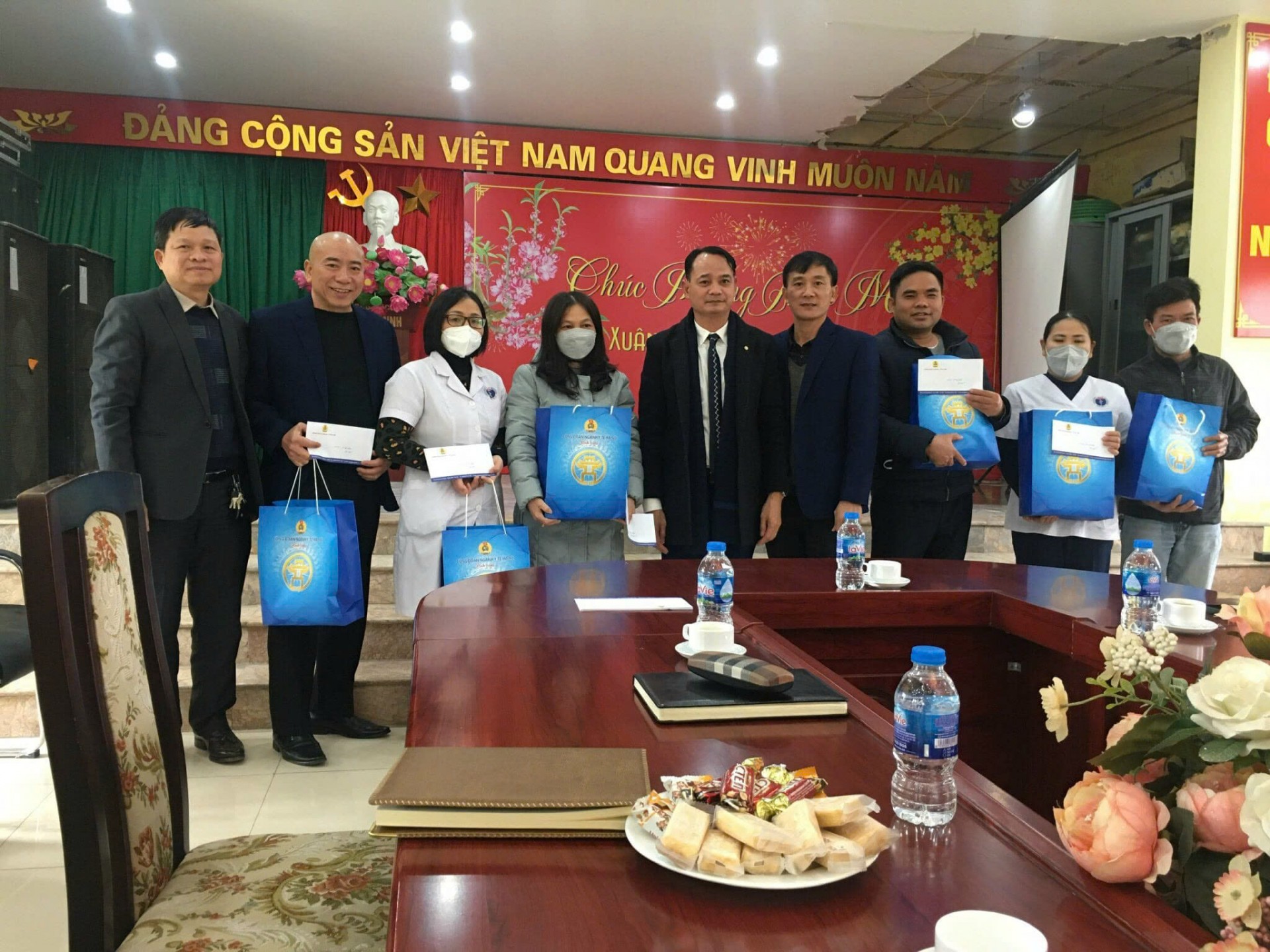 | Công đoàn ngành tặng quà cho cán bộ y tế Bệnh viện 09 Hà Nội có hoàn cảnh khó khăn trong dịp tết nguyên đán./https://suckhoeviet.org.vn/ |