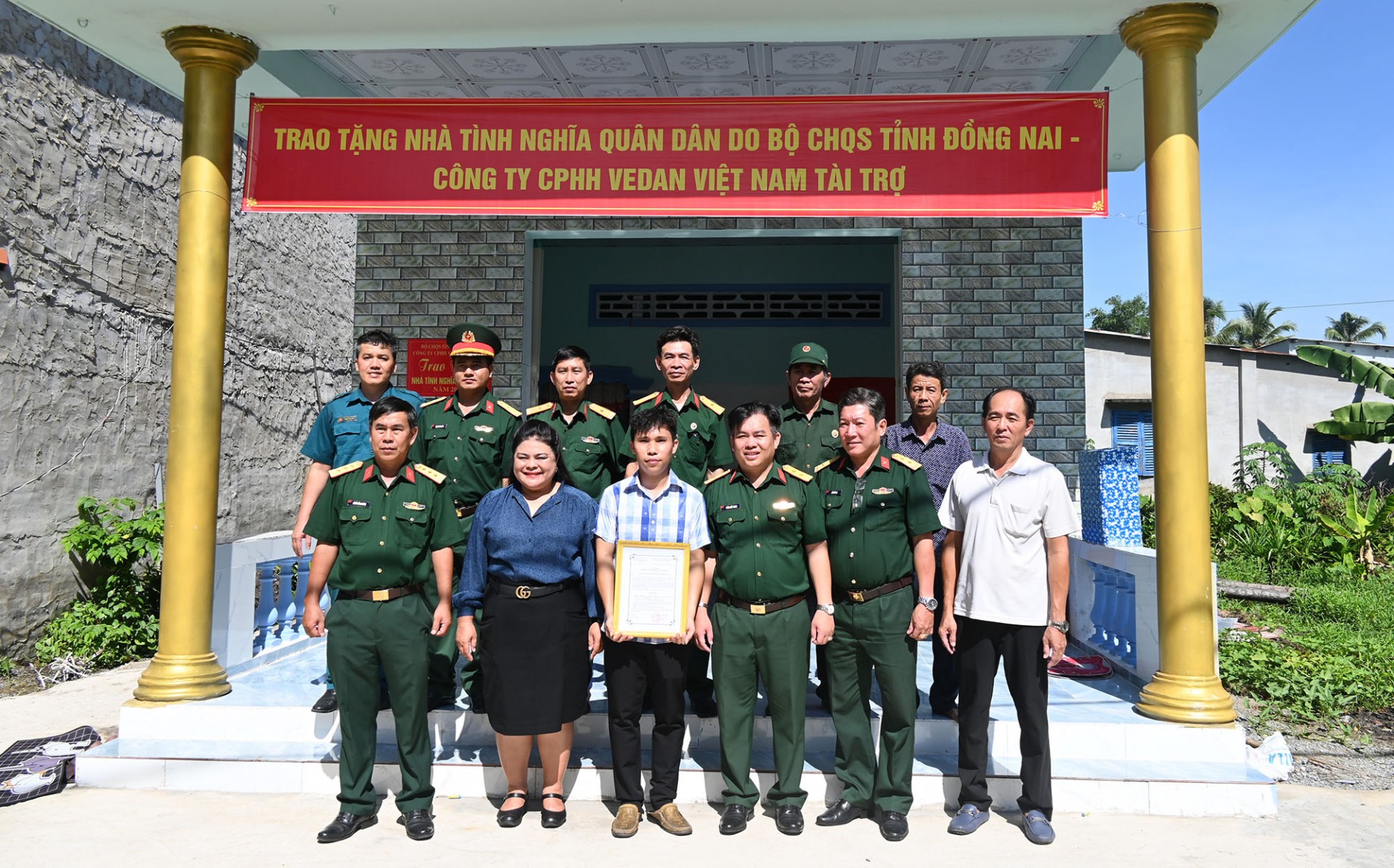 Với tinh thần “Yêu thương và chăm sóc” (Love and Care) từ nhiều năm nay công ty Vedan Việt Nam đã đồng hành cùng BCHQS tỉnh Đồng Nai tiến hành xây dựng những ngôi nhà đồng đội, nhà tình nghĩa quân-dân cho các cán bộ chiến sĩ có hoàn cảnh khó khăn về nhà ở. Đây là một trong những hành động thiết thực giúp ổn định cuộc sống của người dân, động viên tinh thần các cán bộ chiến sĩ yên tâm công tác, góp phần xây dựng cộng đồng đoàn kết, vững mạnh và khẳng định sự gắn bó mật thiết giữa Lực lượng Vũ trang với Doanh nghiệp và Nhân dân.