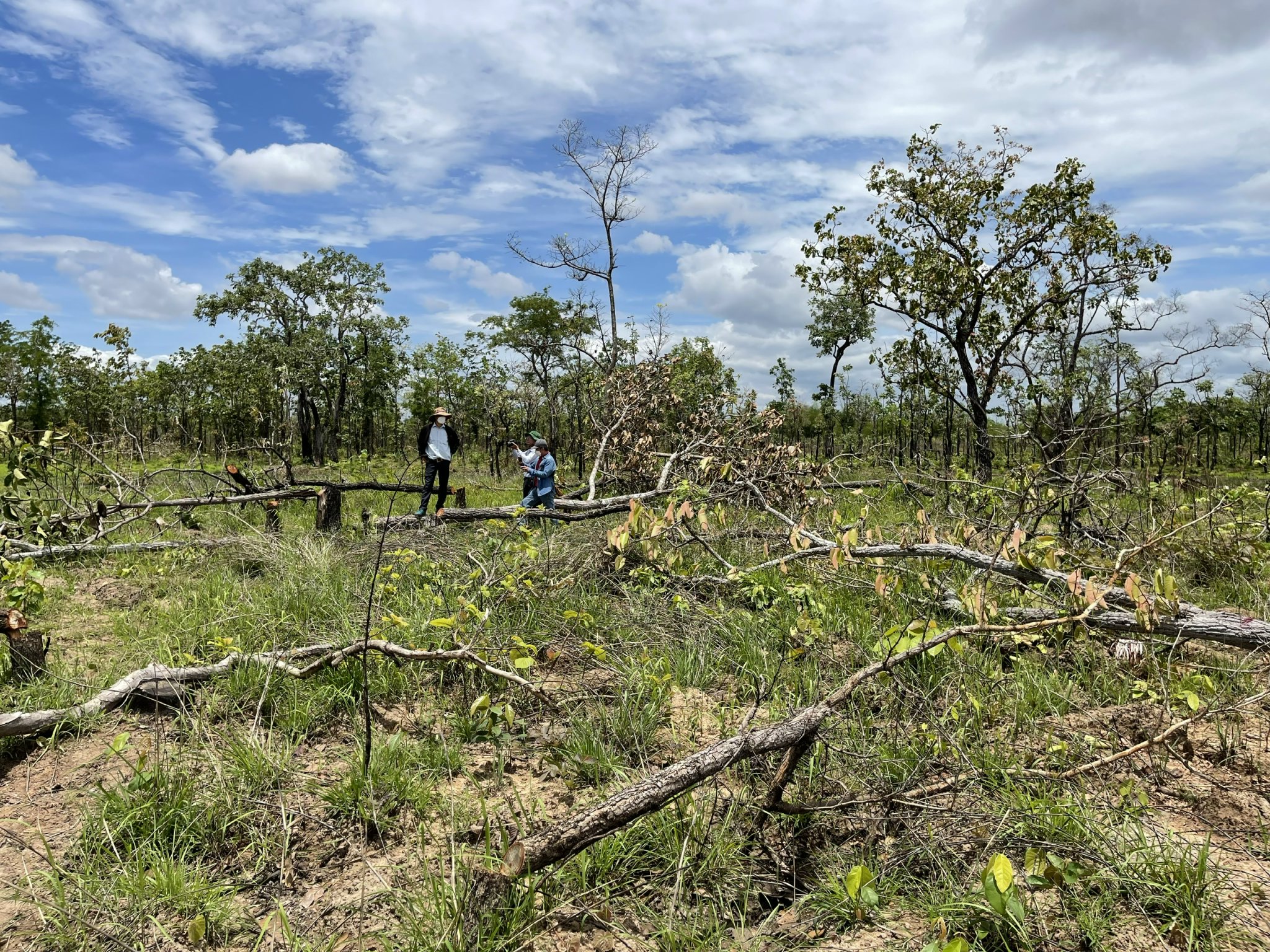 Ngày 5/4, cùng nhóm phóng viên, chúng tôi tìm đến điểm nóng phá rừng tại Tiểu khu 205, thuộc xã Ya Tờ Mốt, huyện biên giới Ea Súp, tỉnh Đắk Lắk. Từ trung tâm xã, chúng tôi phải cơ động hơn 50km bằng đủ các phương tiện: ô tô, xe máy, và thuyền vượt suối từ hướng thôn 12, xã biên giới Ia Rvê, mới tới được khu rừng bị lâm tặc triệt hạ trong tháng 3 vừa qua.