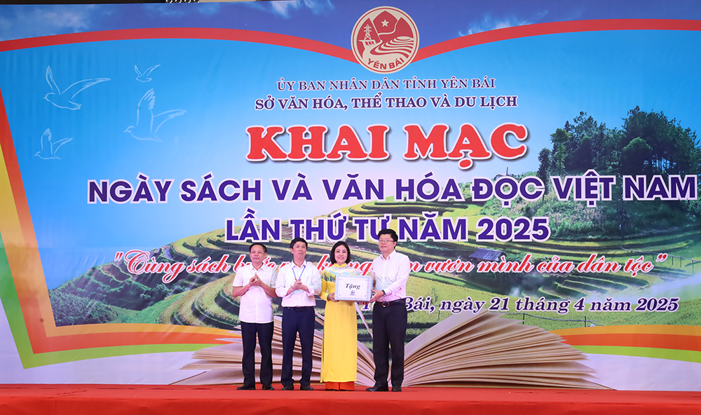 Công ty Cổ phần Xuất bản và Giáo dục Quảng Văn trao tặng 160 đầu sách với 186 cuốn sách trị giá 22 triệu đồng cho Hội Khuyến học tỉnh, Thư viện tỉnh và Trường THPT Nguyễn Huệ (ảnh CTĐT Yên Bái) Với chủ đề “Cùng sách bước vào kỷ nguyên vươn mình của dân tộc”, sự kiện năm nay gửi gắm thông điệp sâu sắc về vai trò của sách trong thời đại công nghệ và hội nhập. Sách không chỉ là kho tàng kiến thức của nhân loại, mà còn là nguồn cảm hứng nuôi dưỡng tâm hồn, mở rộng tư duy, thắp lên ý chí vươn lên và cống hiến cho sự phát triển đất nước. Hưởng ứng Ngày Sách và Văn hóa đọc, Yên Bái tổ chức chuỗi hoạt động phong phú như triển lãm sách, hội chợ sách, giao lưu với các tác giả, cuộc thi vẽ tranh theo sách, đẩy mạnh xe thư viện lưu động, phát động quyên góp sách cho học sinh vùng khó. Ngoài ra, công tác tuyên truyền về giá trị của văn hóa đọc được tăng cường thông qua báo chí, mạng xã hội và các hình thức trực quan sinh động. Phát biểu tại buổi lễ, ông Nguyễn Lâm Tới – Phó Giám đốc Sở Văn hóa, Thể thao và Du lịch tỉnh Yên Bái – nhấn mạnh tầm quan trọng của việc xây dựng văn hóa đọc trong cộng đồng, đặc biệt trong lứa tuổi học sinh, sinh viên. Đây là nền tảng để hình thành những công dân có tư duy độc lập và năng lực sáng tạo trong tương lai.